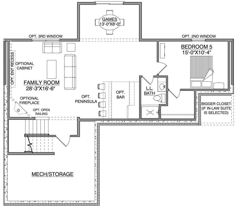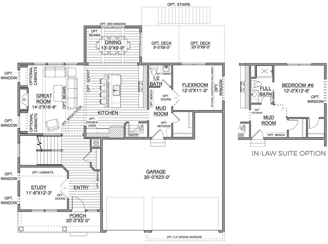 - Rear-oriented Flex Room can be upgraded to a main floor In-Law Suite for visiting parents or guests