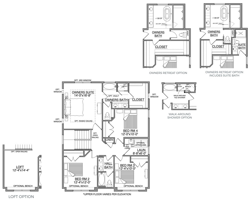 - Owners Bath features optional vaulted ceiling and walk-around shower
