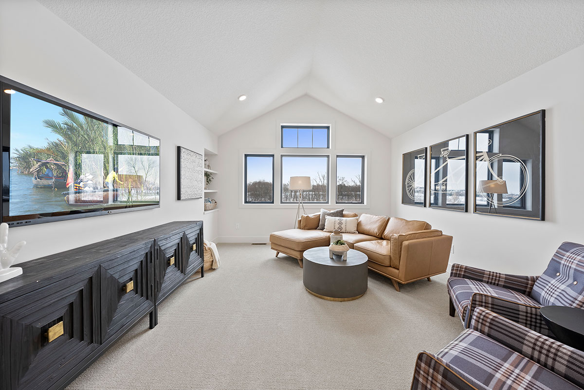 See neighborhoods for pricing detailsHanson Builders’ Sheridan Sport floorplan offers incredible attention to detail and a stunning interior with a modern feel. This home features a prominent elevated front exterior with numerous windows to bring in natural light. The main level offers a great room with wood ceiling beams, custom designed kitchen with large center island, and large dining room. The upper level features a spacious owner's suite with a spa-like bathroom and three additional bedrooms including bathrooms in each. The lower level offers a large family room, optional wet bar, separate exercise area and a large sport court.
