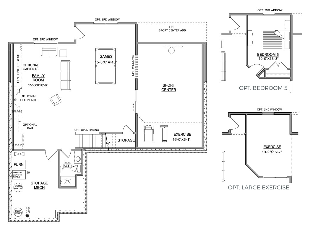 - Family and Game rooms with wet bar, fireplace and media wall plus 5th Bedroom or additional Exercise Room and ¾ Bath
