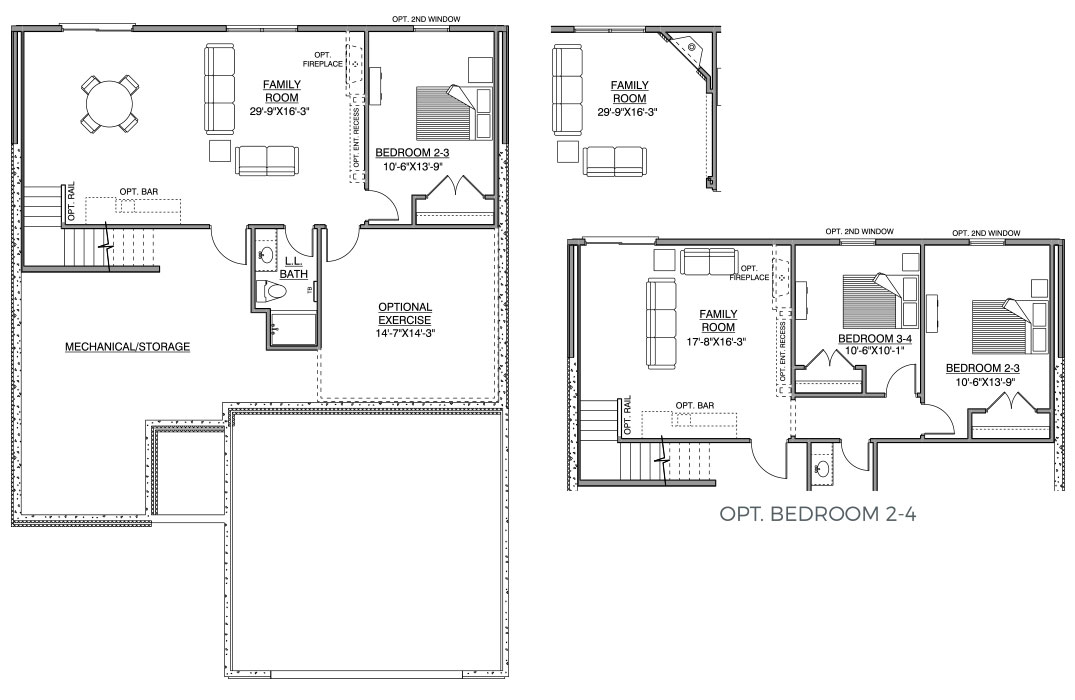 - Finished Family and Game rooms with optional wet bar, fireplace and media wall plus 2 additional Bedrooms and ¾ Bath