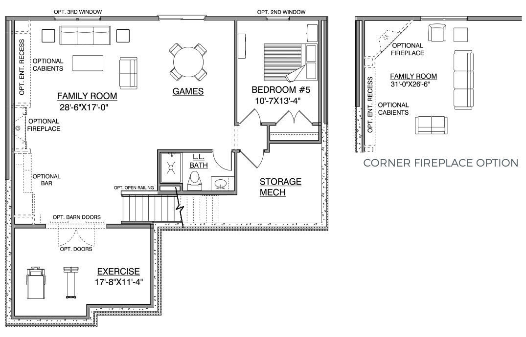 - Exercise Room has optional swing or barn doors and has plenty of space for working out.