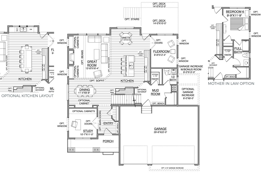 - The Flex Room can be upgraded to a 6th bedroom which includes upgrading the half bath to a 3/4 bath.