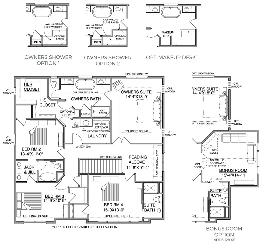 - Optional Bonus Room has additional options for double doors, a vaulted ceiling, and access to Suite Bath for sleepovers.