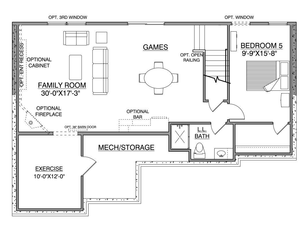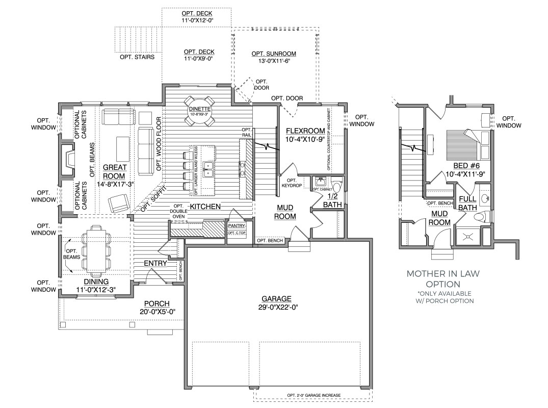 - Rear-facing Flexroom for work or play with option for main-floor In-law Suite with private ¾ bath access