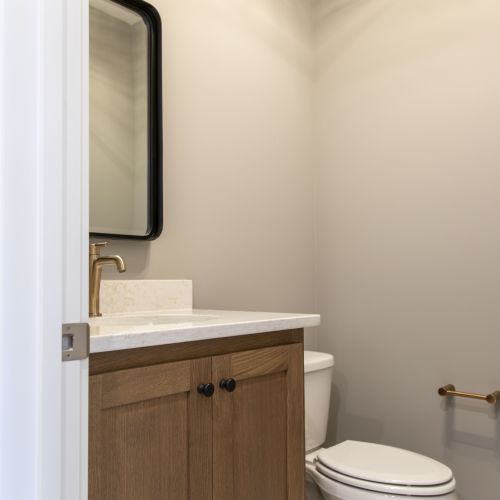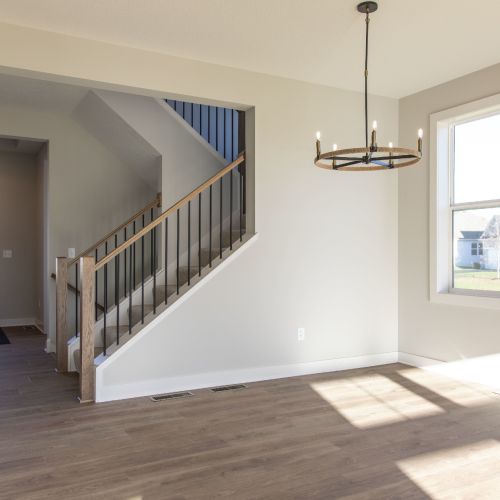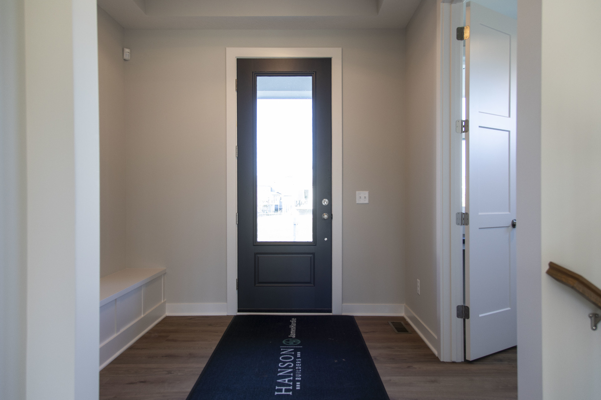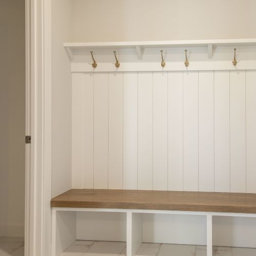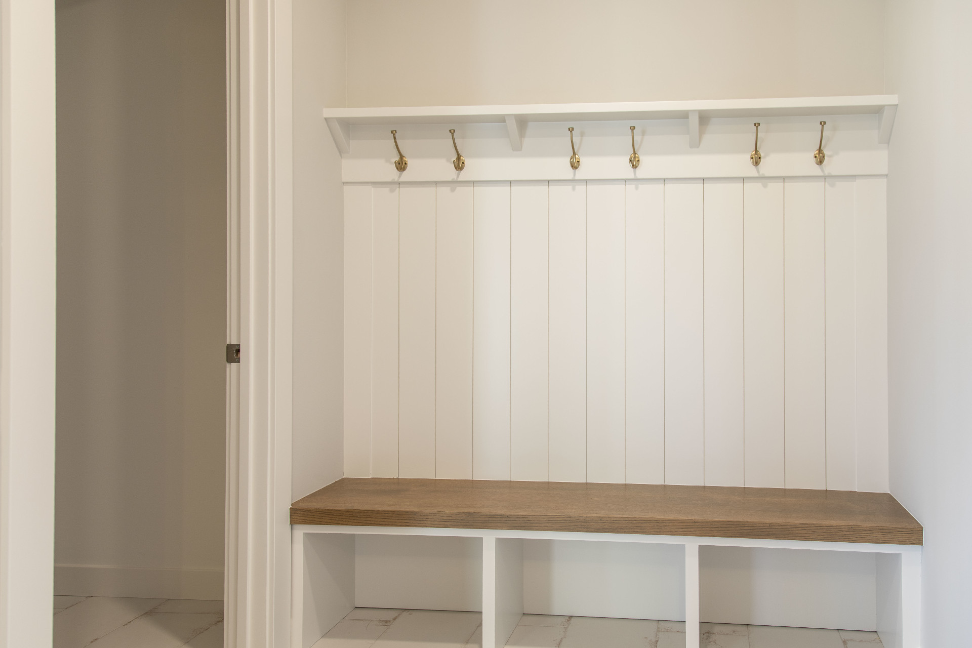 - Functional Mudroom includes an optional built-in bench, a tucked-away Powder Bath, and a walk-in coat closet for convenience and organization.
