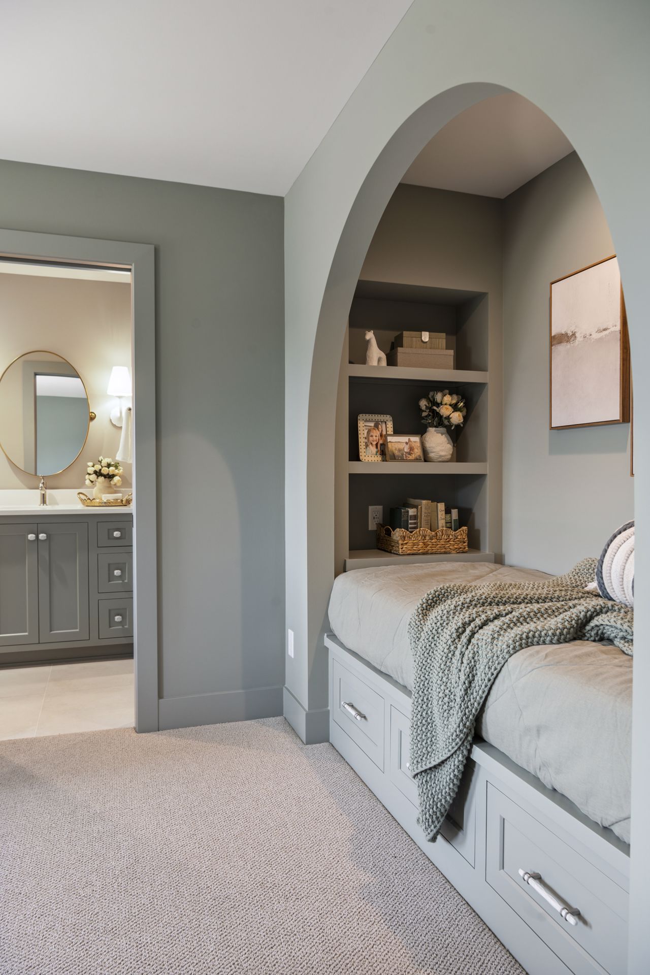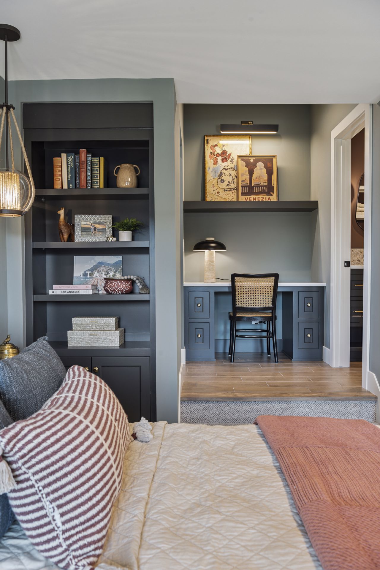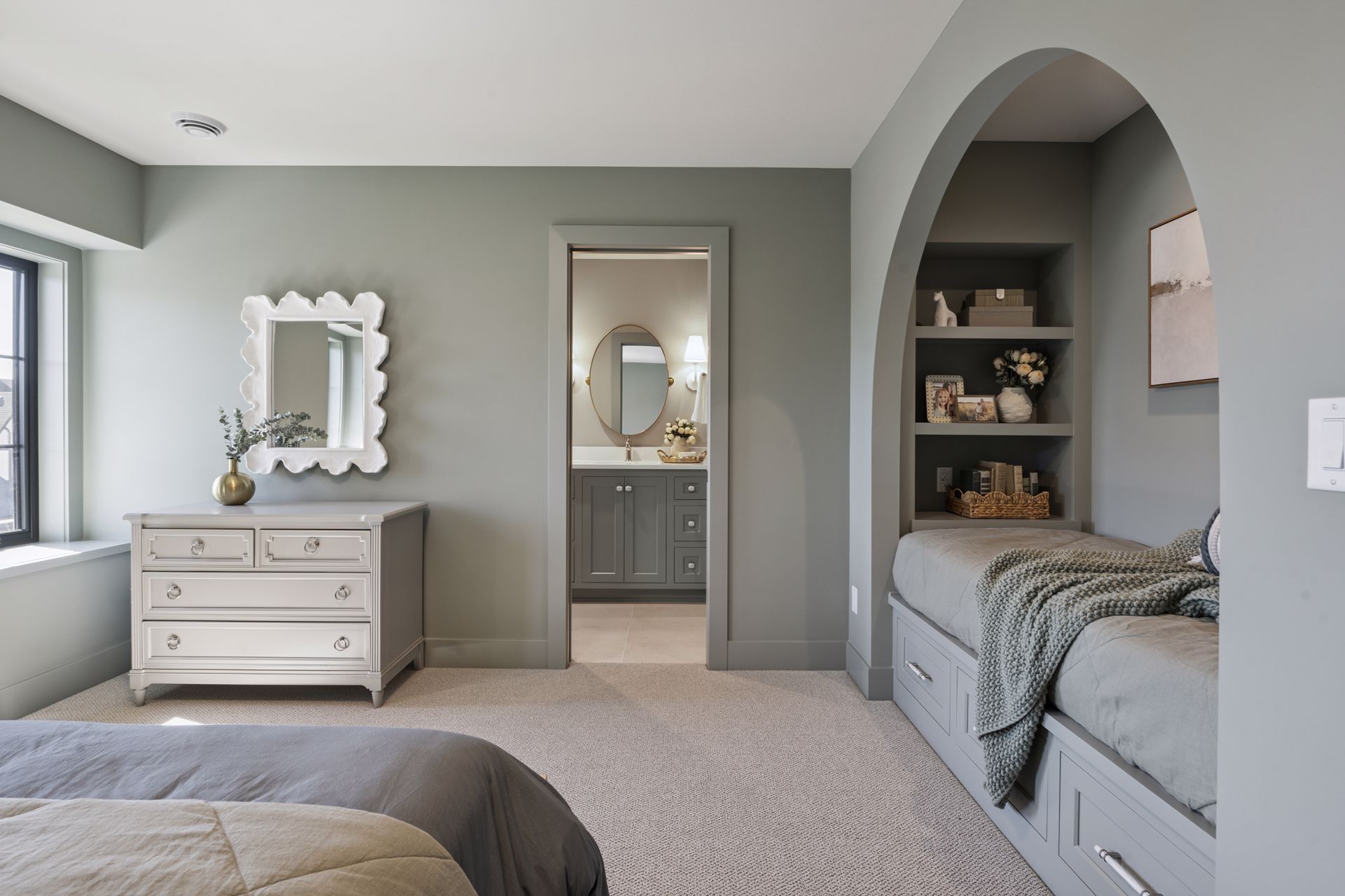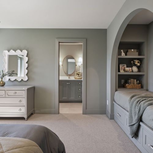 - Each of the other three Bedrooms have their own private Suite Baths and unique custom built-in features such as desks, cabinetry & daybeds