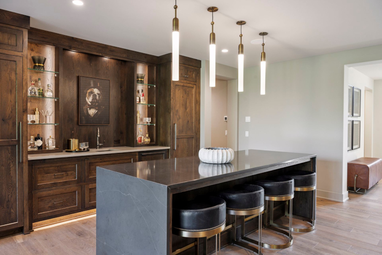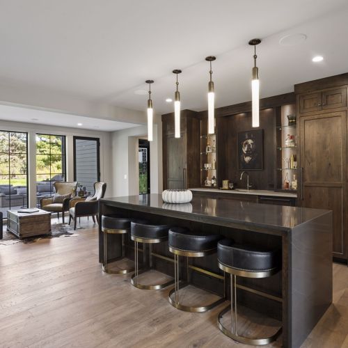 - Unique main floor Bar & dual sided glass wine display off the Kitchen & Dining is perfect for entertaining