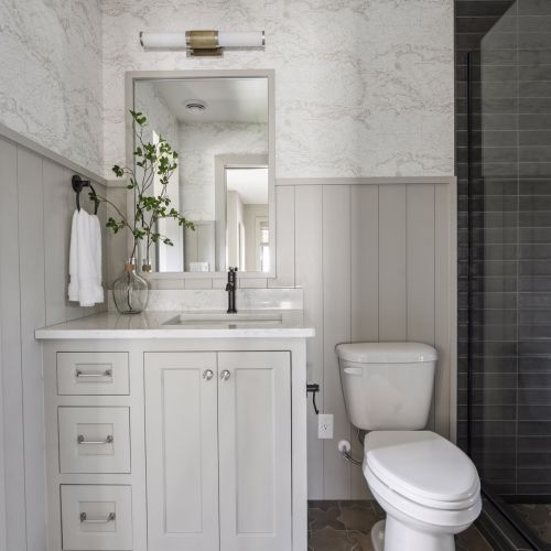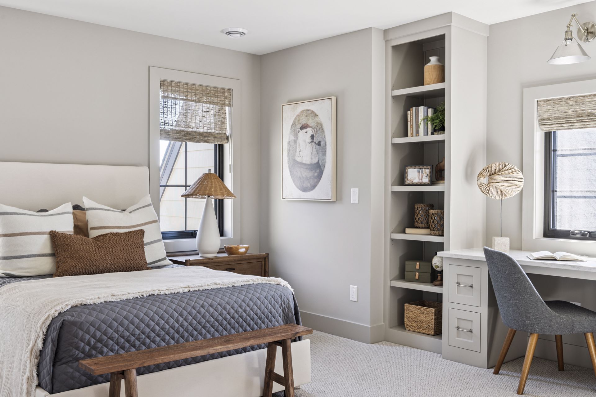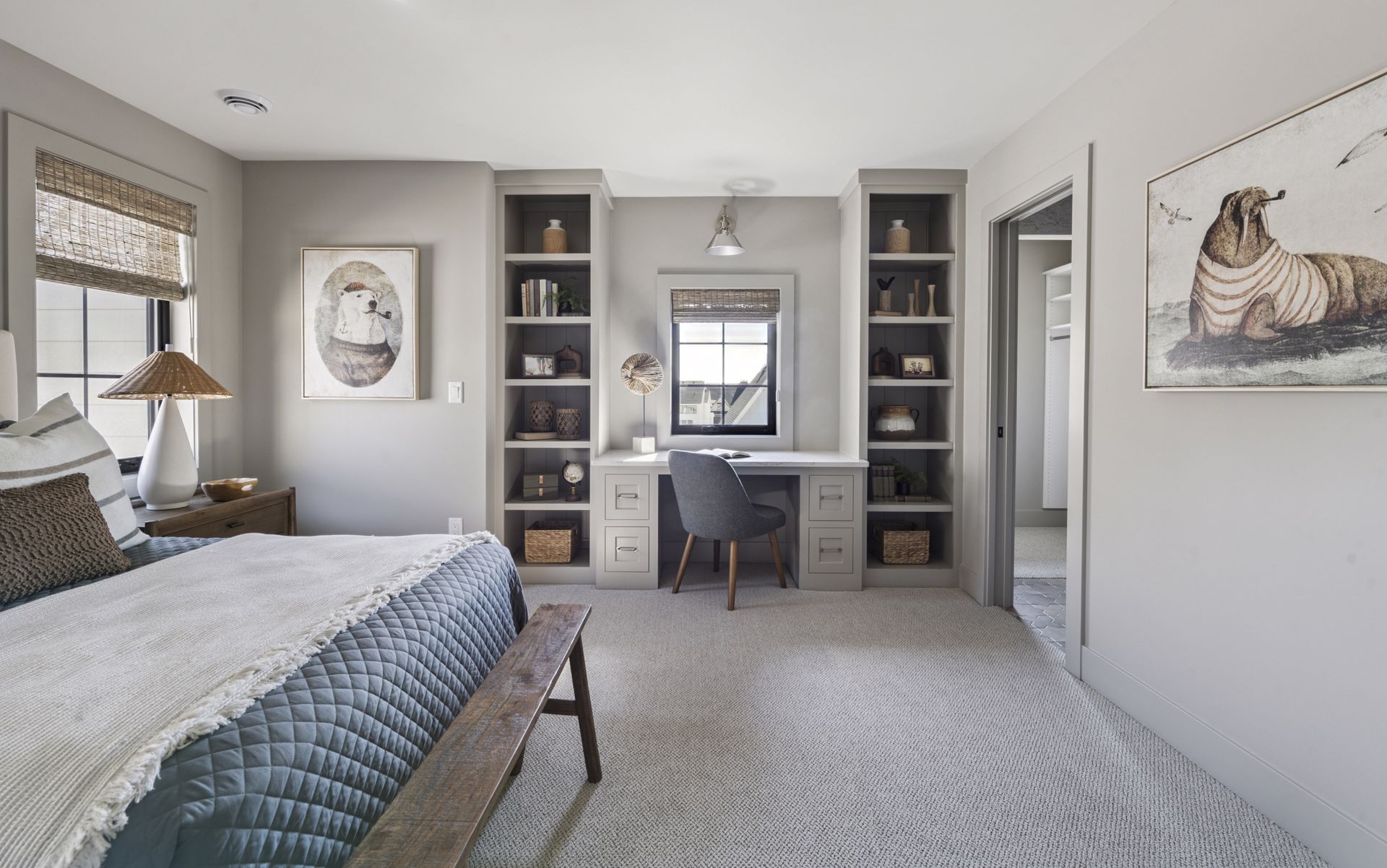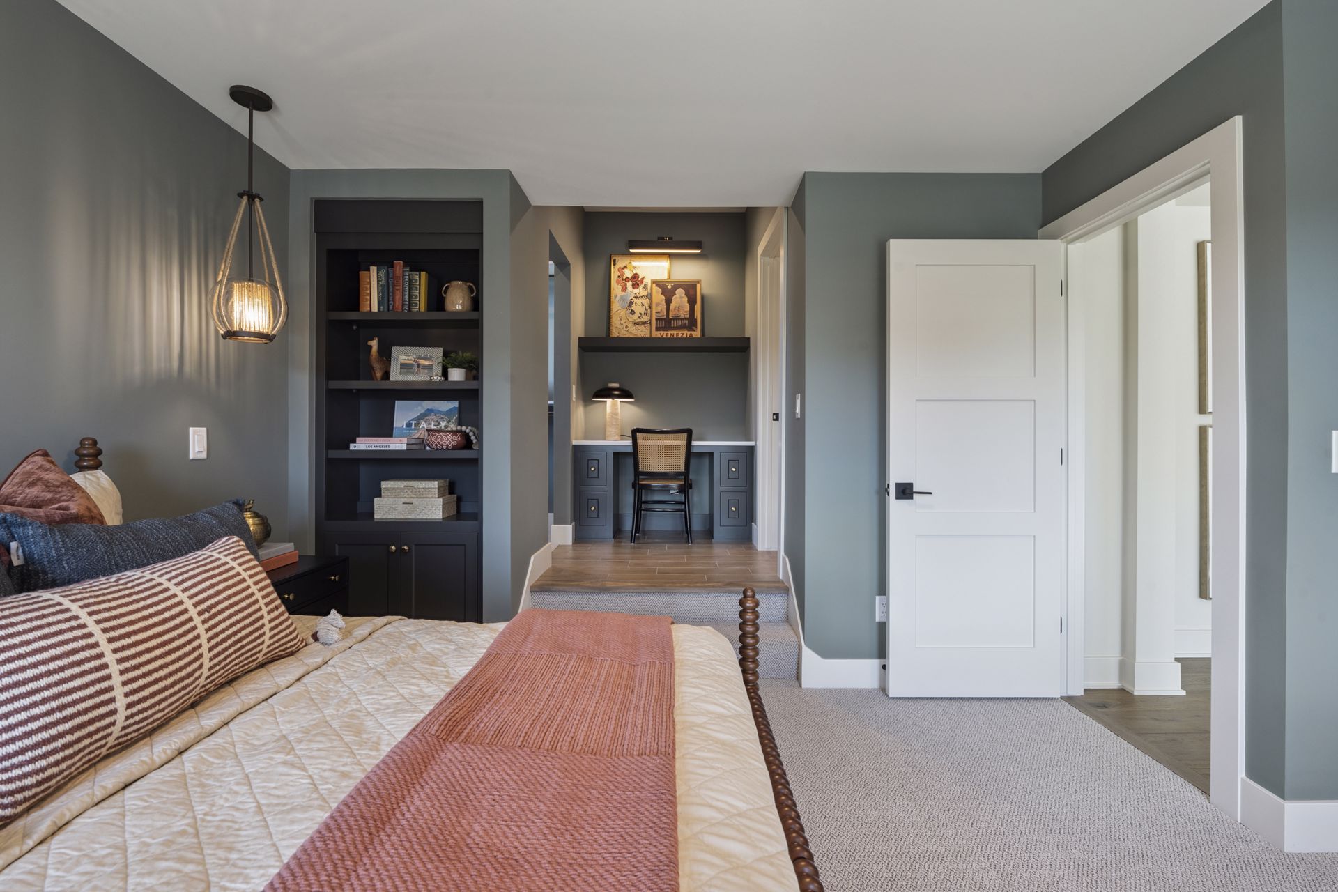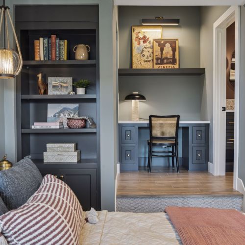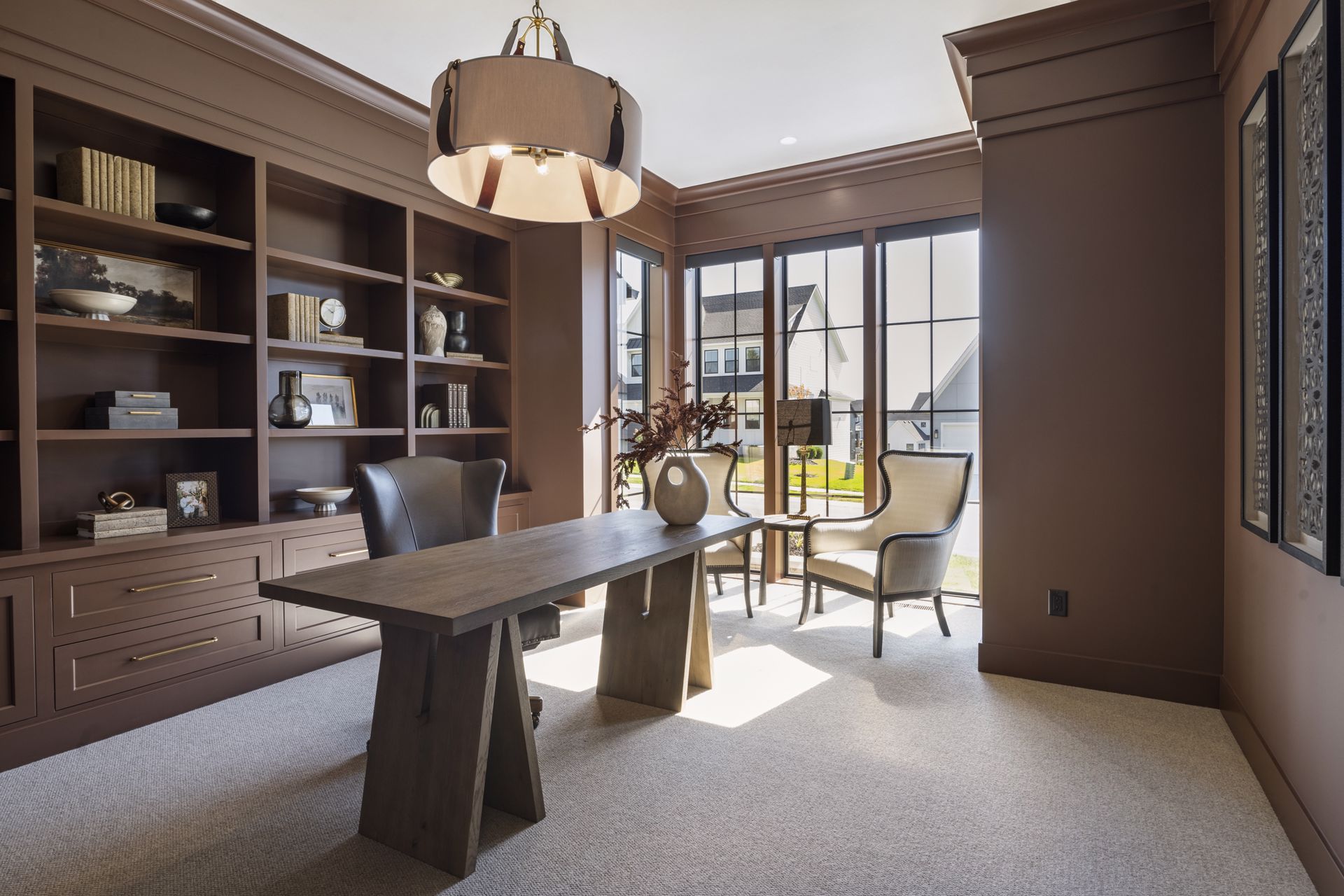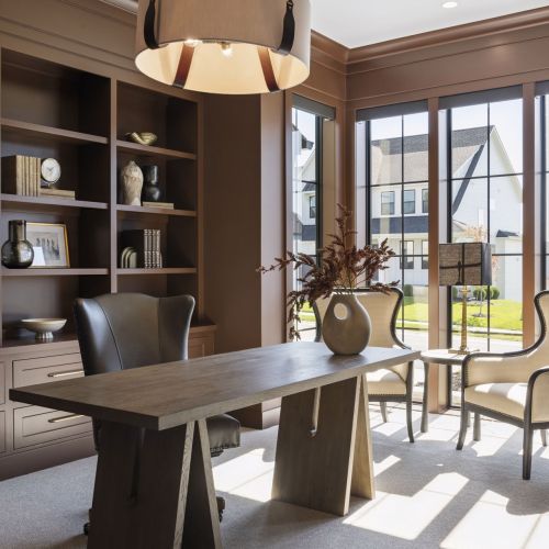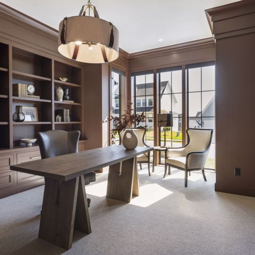 - Private Study includes custom built-in cabinetry and front facing windows, the perfect space for work and client meetings