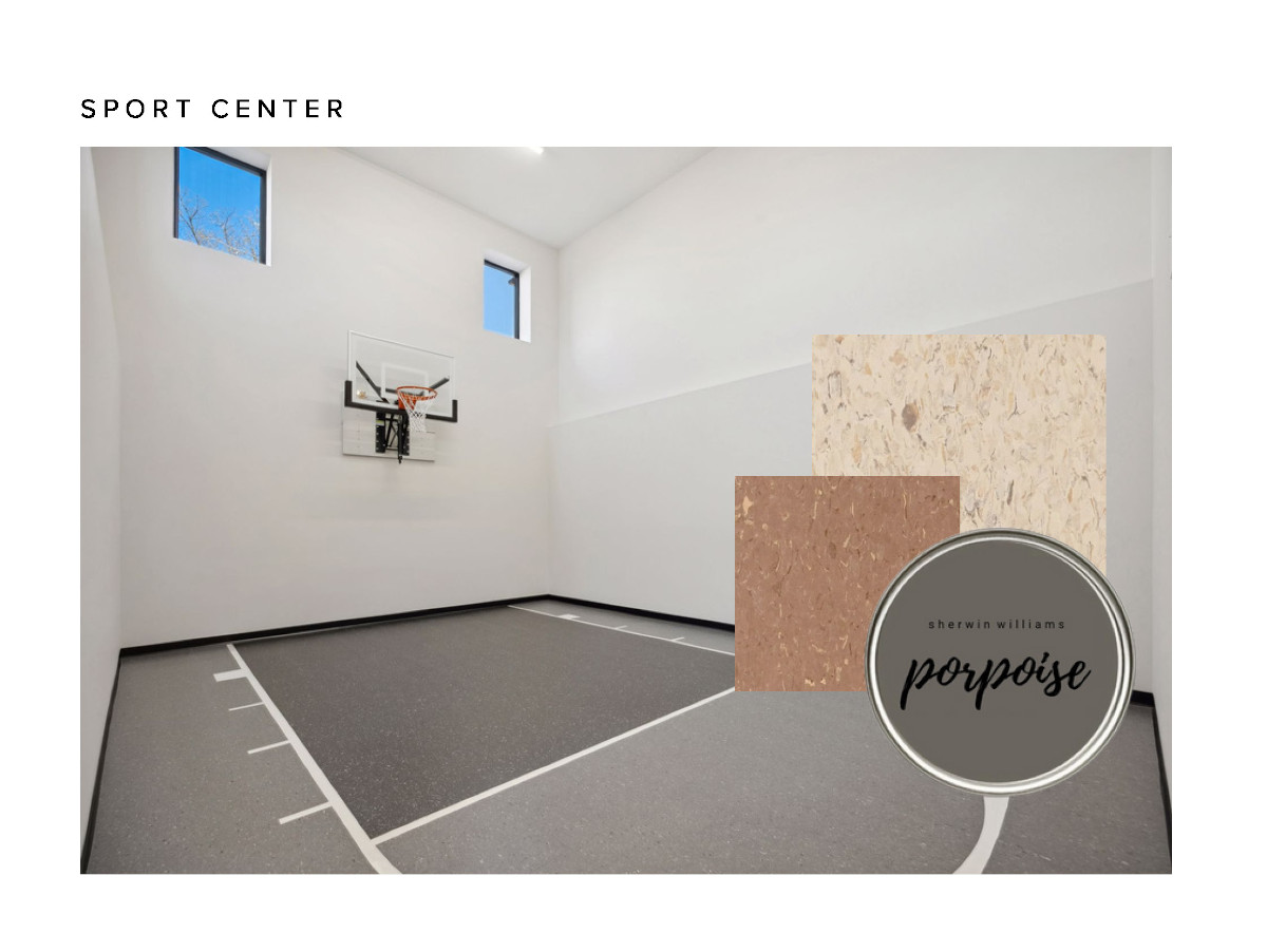 - Indoor 2-story Sport Center open to ample exercise area and nearby ball storage closet