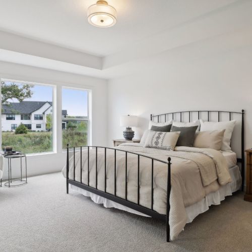 - Owners Suite offers double entry doors, a dramatic raised ceiling and large bank of windows creating a spacious and airy retreat