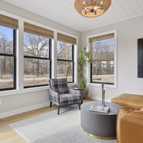 - Rear-oriented Sunroom with vaulted ceiling for family getaway relaxation and solitude