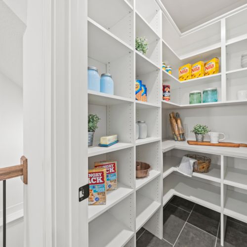 - Large Pantry between Garage and Kitchen for convenient grocery unloading