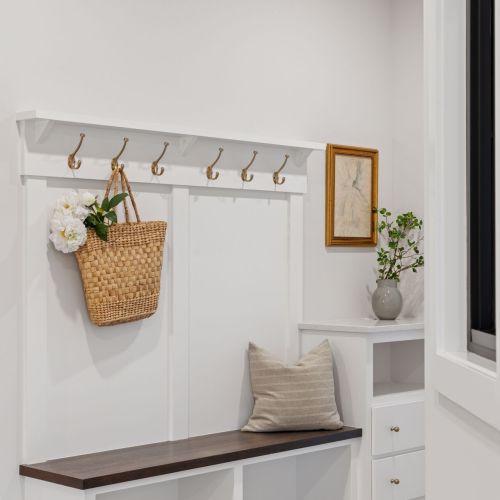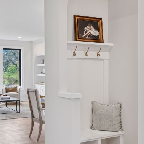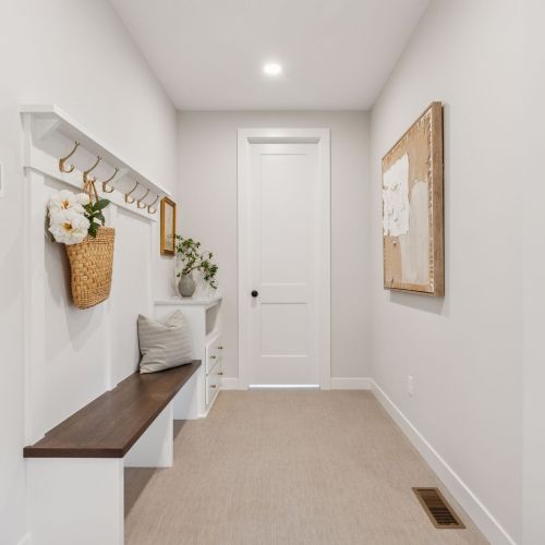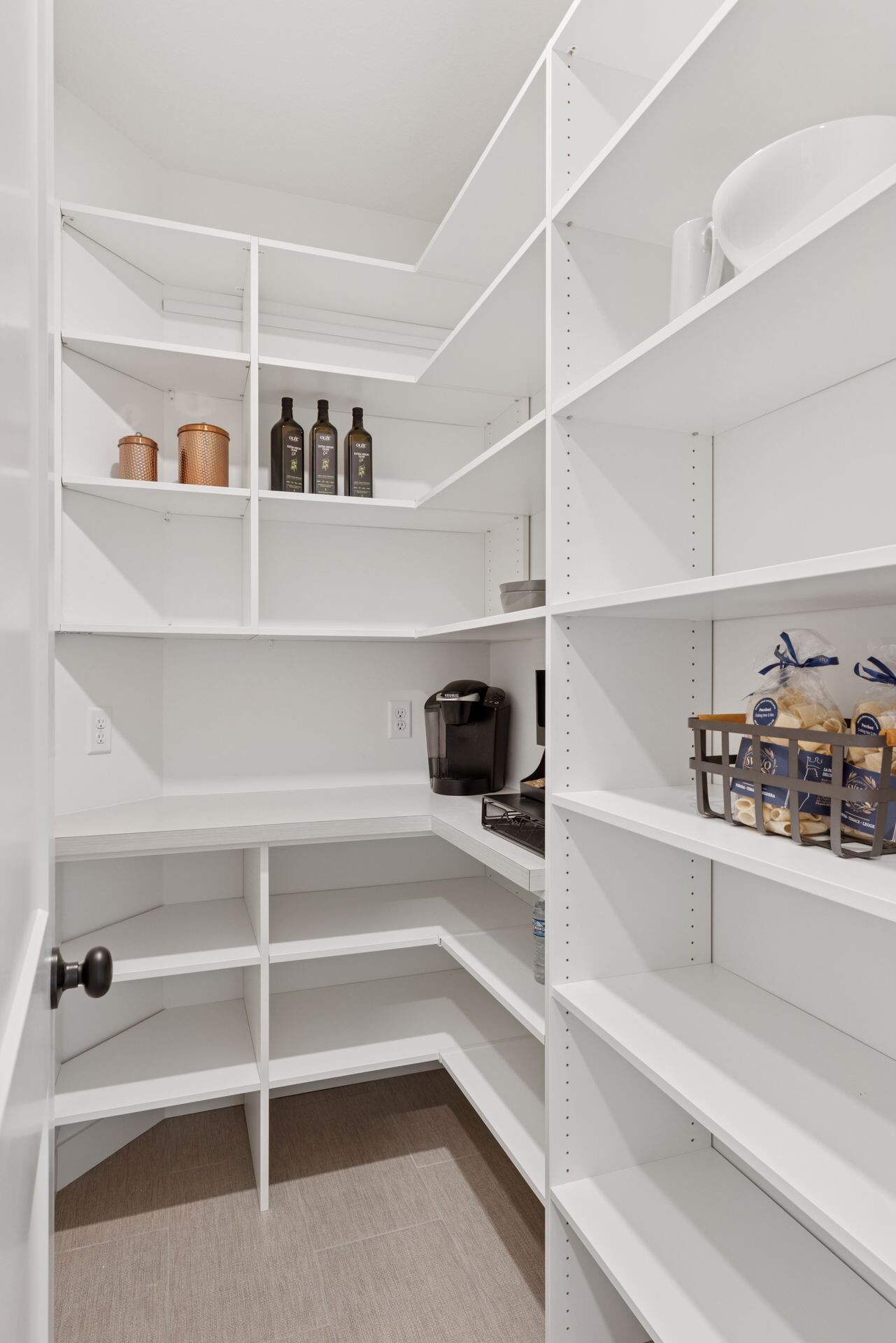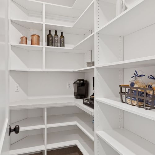 - Garage Entry includes a spacious pantry positioned between the Kitchen and garage for effortless grocery unloading. Includes a mudroom bench, key drop, and a large coat closet for additional organization.