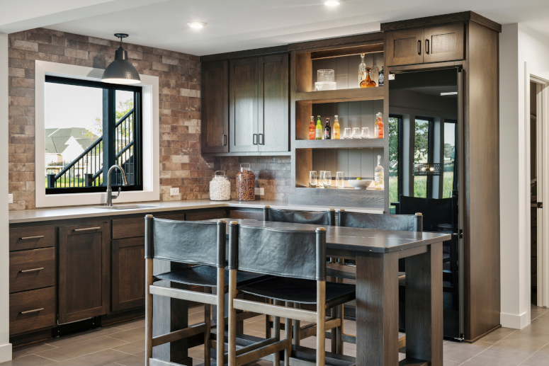 - A walk-out Lower Level offers a spacious Family Room and Games area with an optional entertainment media wall & an inviting Wet Bar with an island for seating.