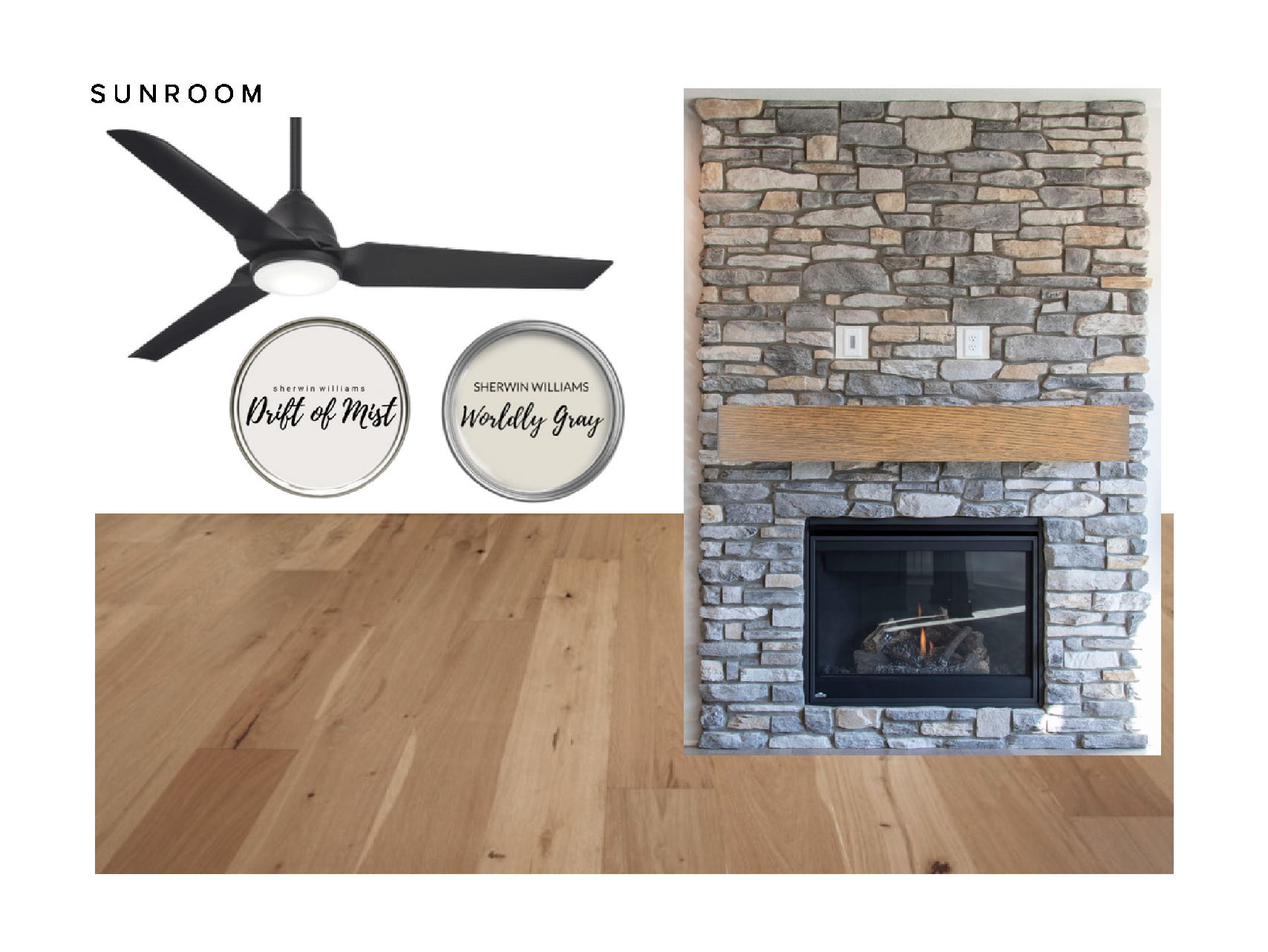 - Cozy Sunroom with floor to ceiling stone fireplace tucked behind Kitchen for family relaxation.