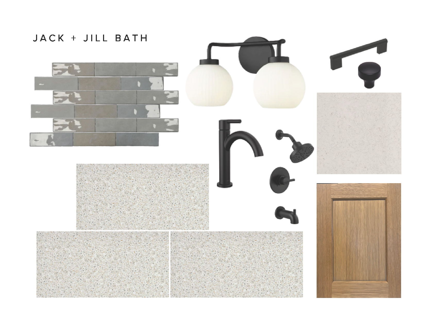 - Two bedrooms share a Jack & Jill Bath with a private shower/toilet room and individual split vanities, while a Suite Bedroom enjoys a private bath and walk-in closet.