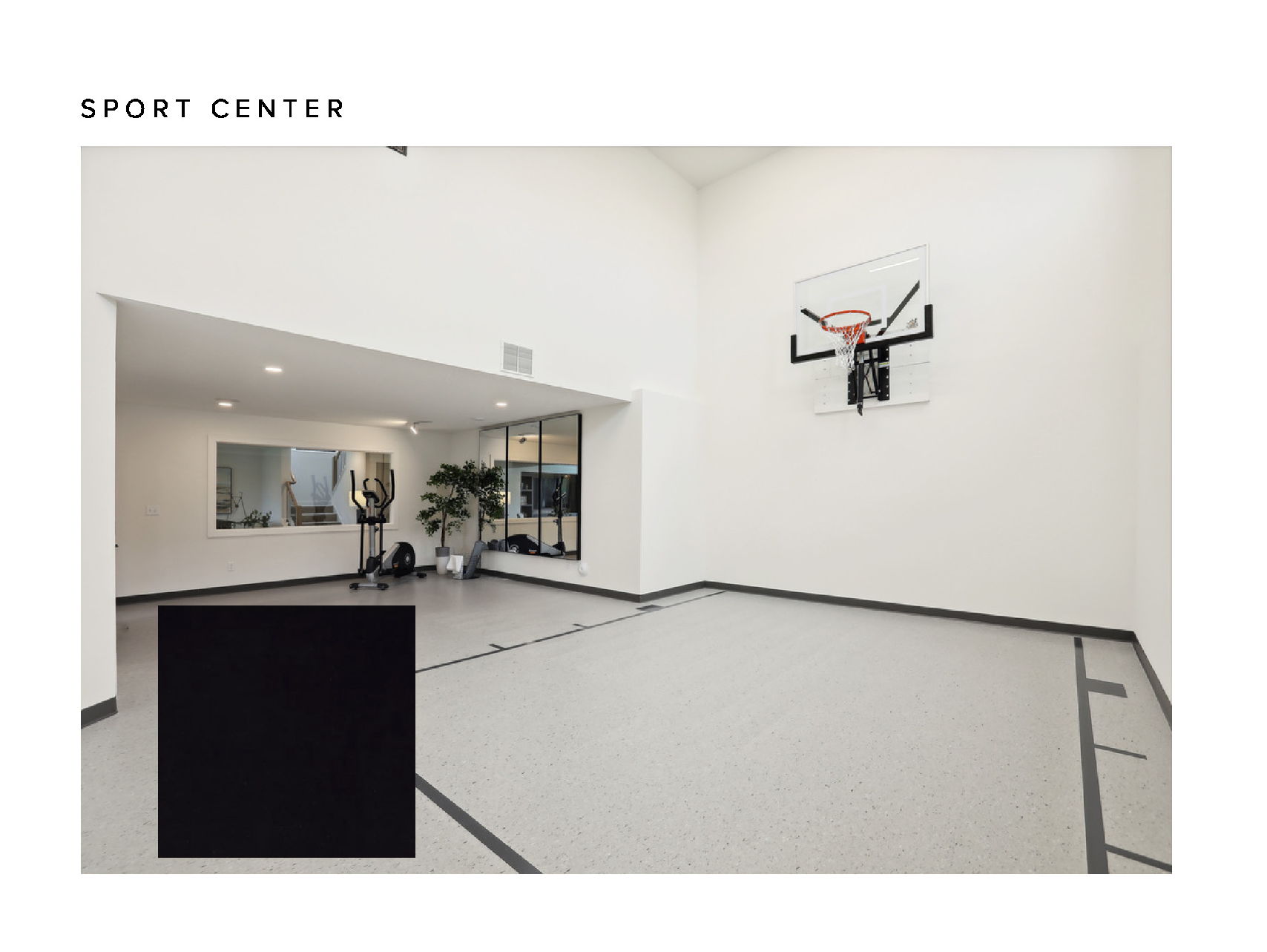 - Indoor 2-Story Sport Center open to a spacious exercise area, perfect for workouts and recreational activities, along with a convenient ball storage closet.