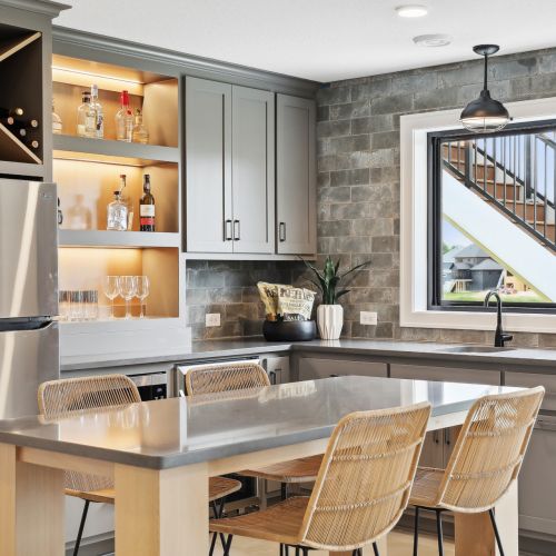 - Family Room and Game Areas with built-in entertainment cabinetry, wrap-around Wet Bar and Island is perfect for family functions or game days.