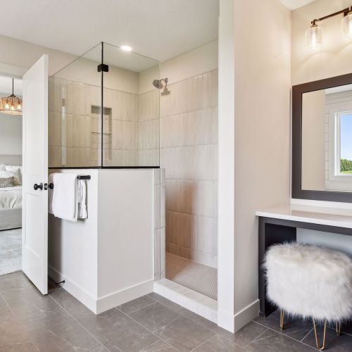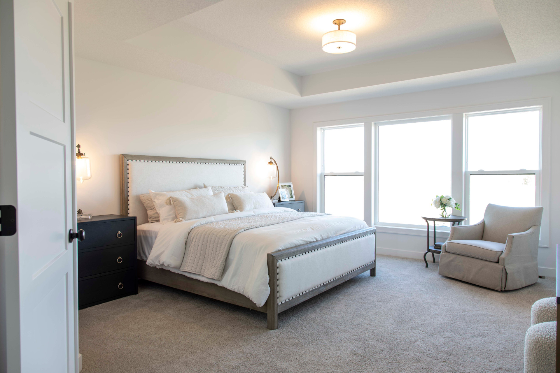 - Owner's Suite boasts double entry doors, a dramatic raised ceiling and additional window for abundant natural daylight, creating a bright and airy retreat.