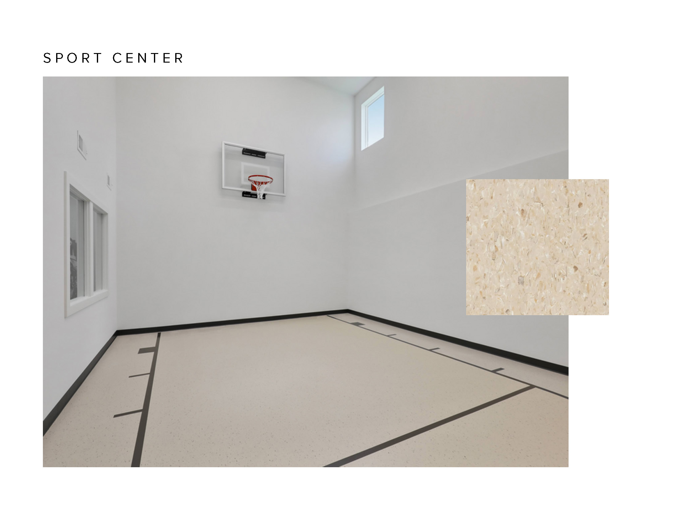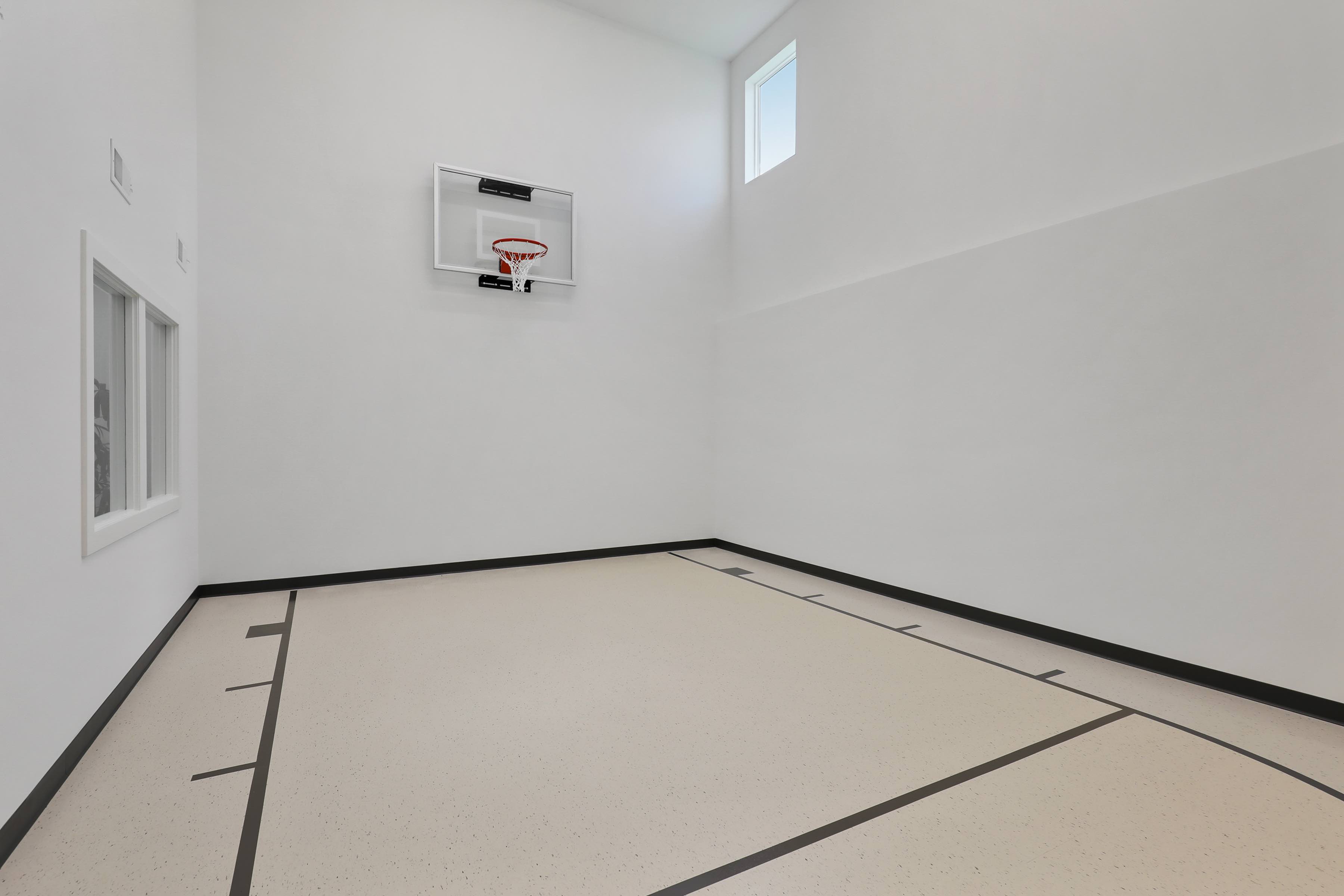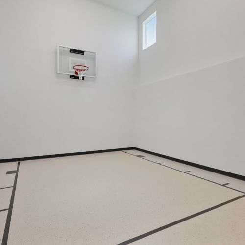 - Indoor 2-Story Sport Center open to a spacious exercise area, perfect for workouts and recreational activities, along with a convenient ball storage closet.