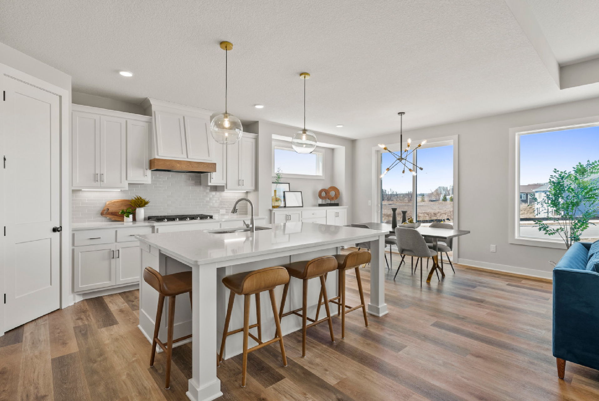 - The central Kitchen is thoughtfully designed with an 8’ stained white oak island as its centerpiece, this kitchen includes a walk-in pantry and a seamless connection to the surrounding living and dining areas—ideal for both everyday living and entertaining.