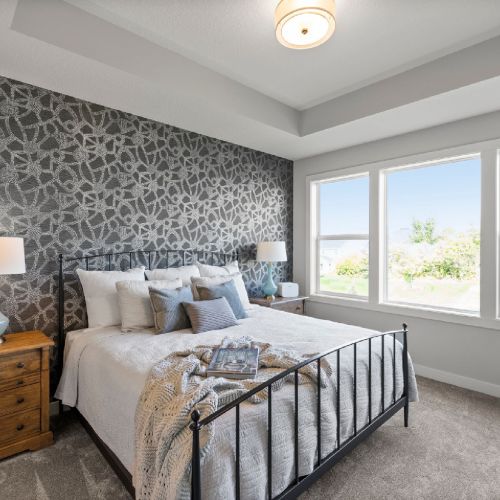 - The second bedroom / Flexroom is located off the front entry. This space is ideal as a guest bedroom, home office, or study—designed for flexible living.