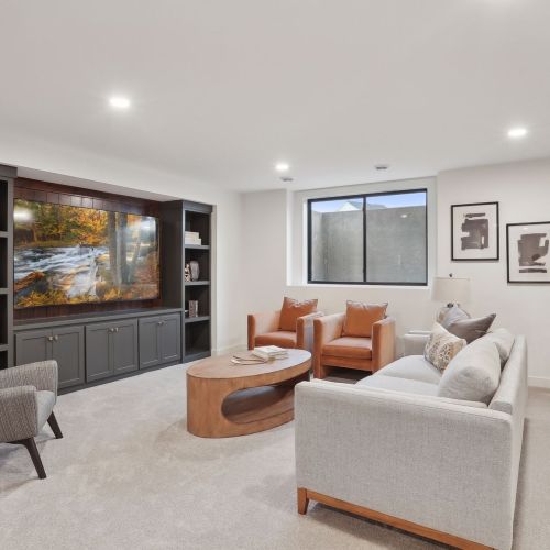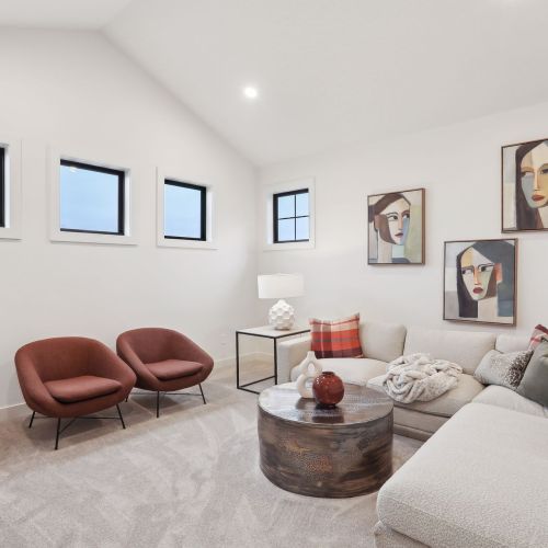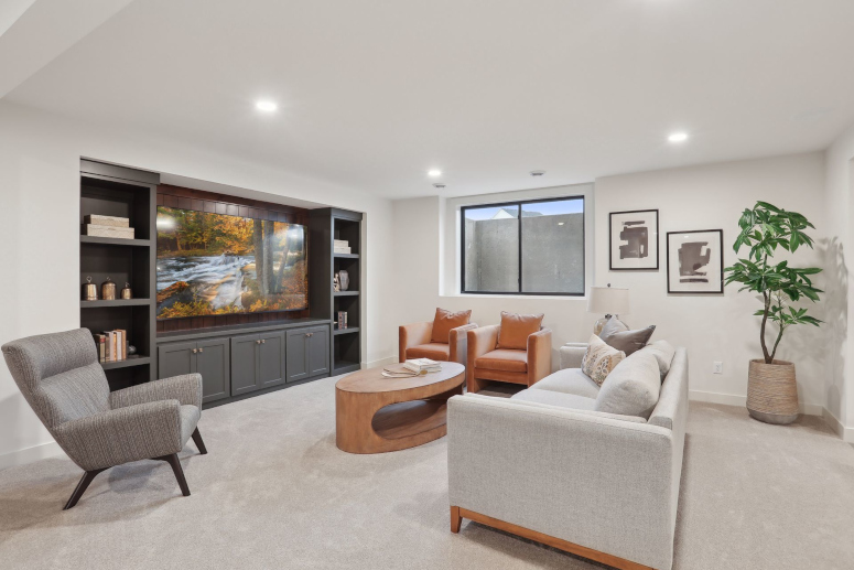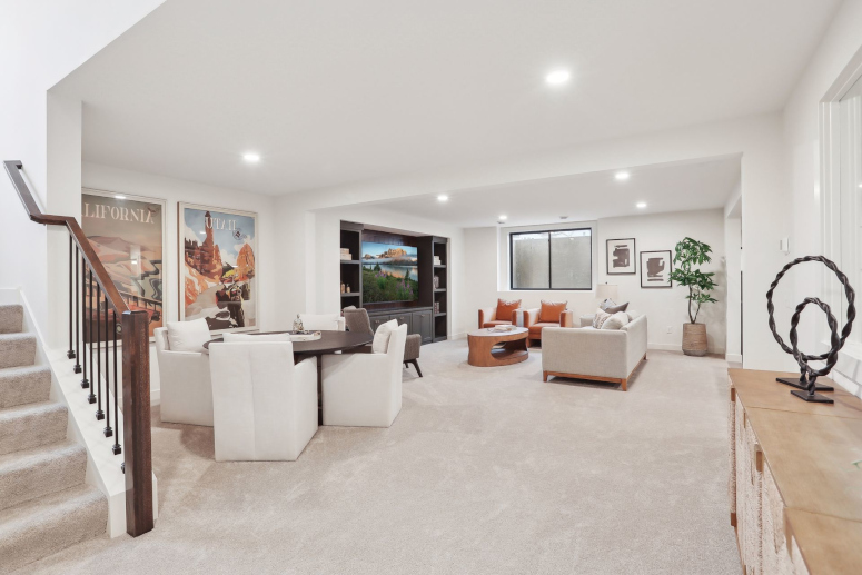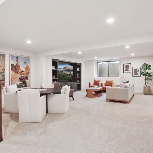 - Lower Level offers a spacious Family Room and Games area with an optional entertainment media wall & an inviting Wet Bar with an island for seating.