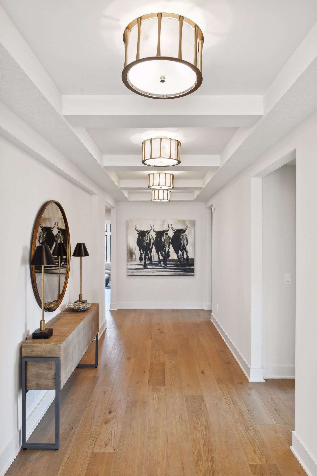 - The dramatic Great Hall features wood flooring, raised coffered ceiling and decorative lighting.