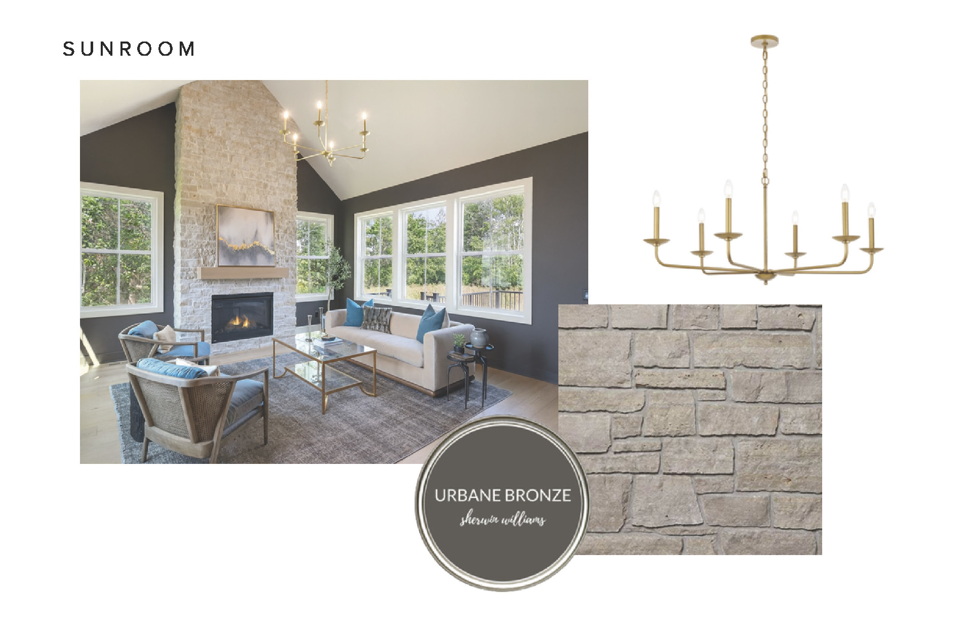 - Cozy Sunroom with floor to ceiling stone fireplace conveniently located off the Kitchen.