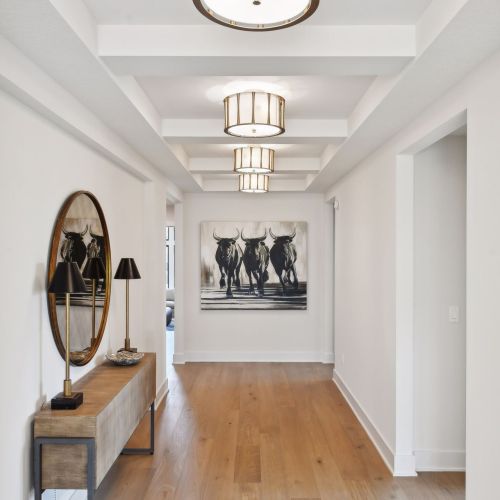 - Dramatic 10-foot ceilings throughout the Main Level featuring coffered ceilings flowing seamlessly through the Great Room and Kitchen.