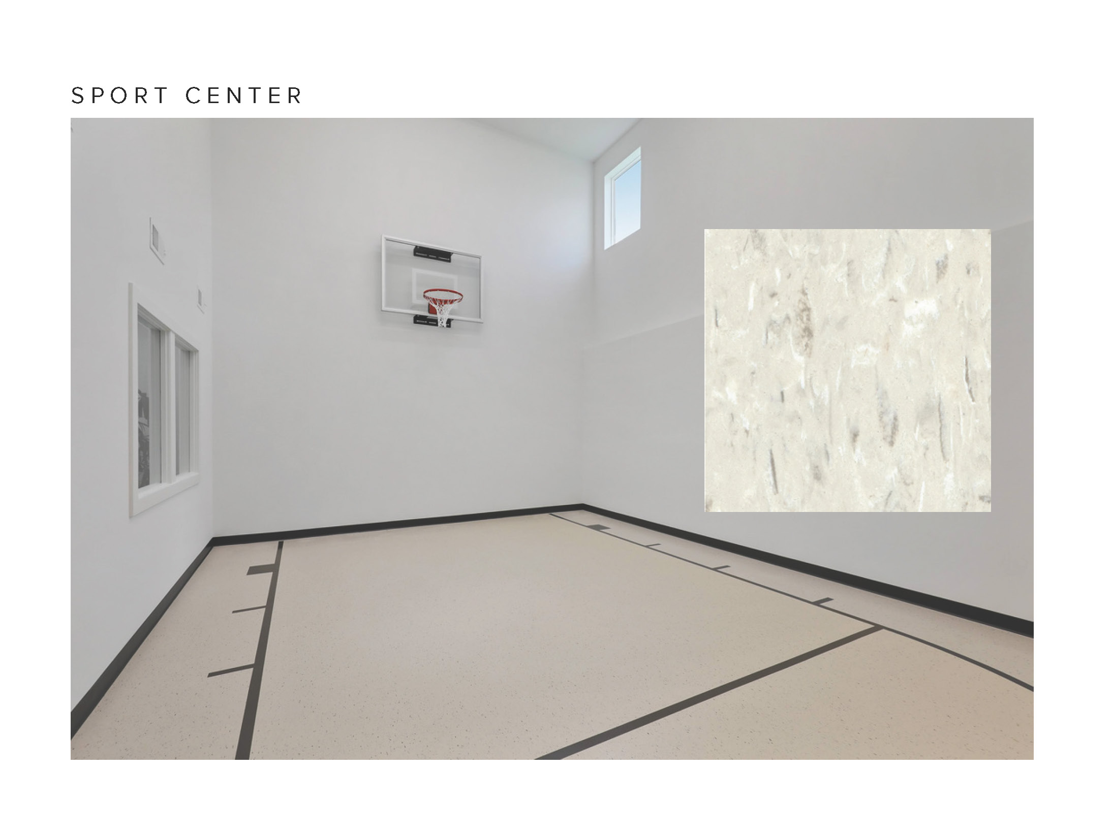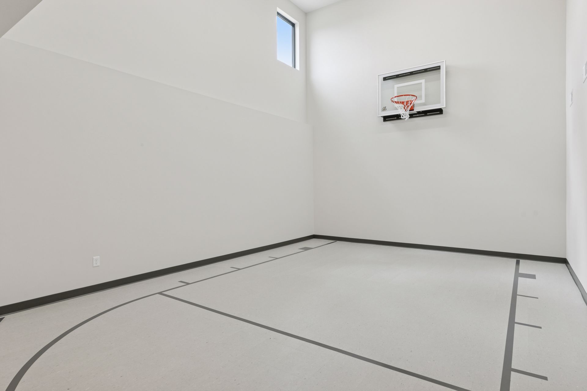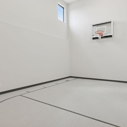 · Indoor 2-Story Sport Center open to a spacious exercise area, perfect for workouts and recreational activities, along with a convenient ball storage closet.
