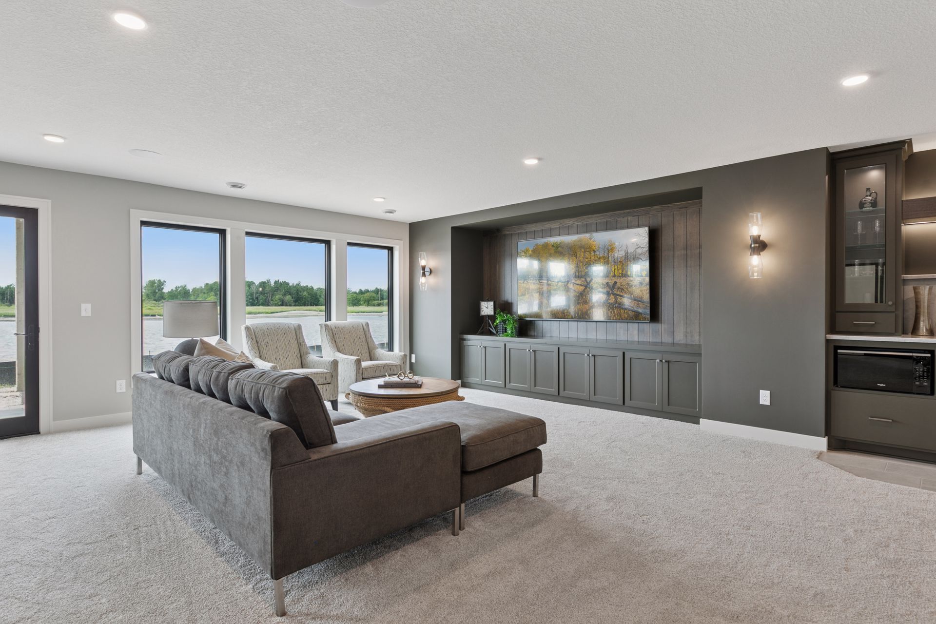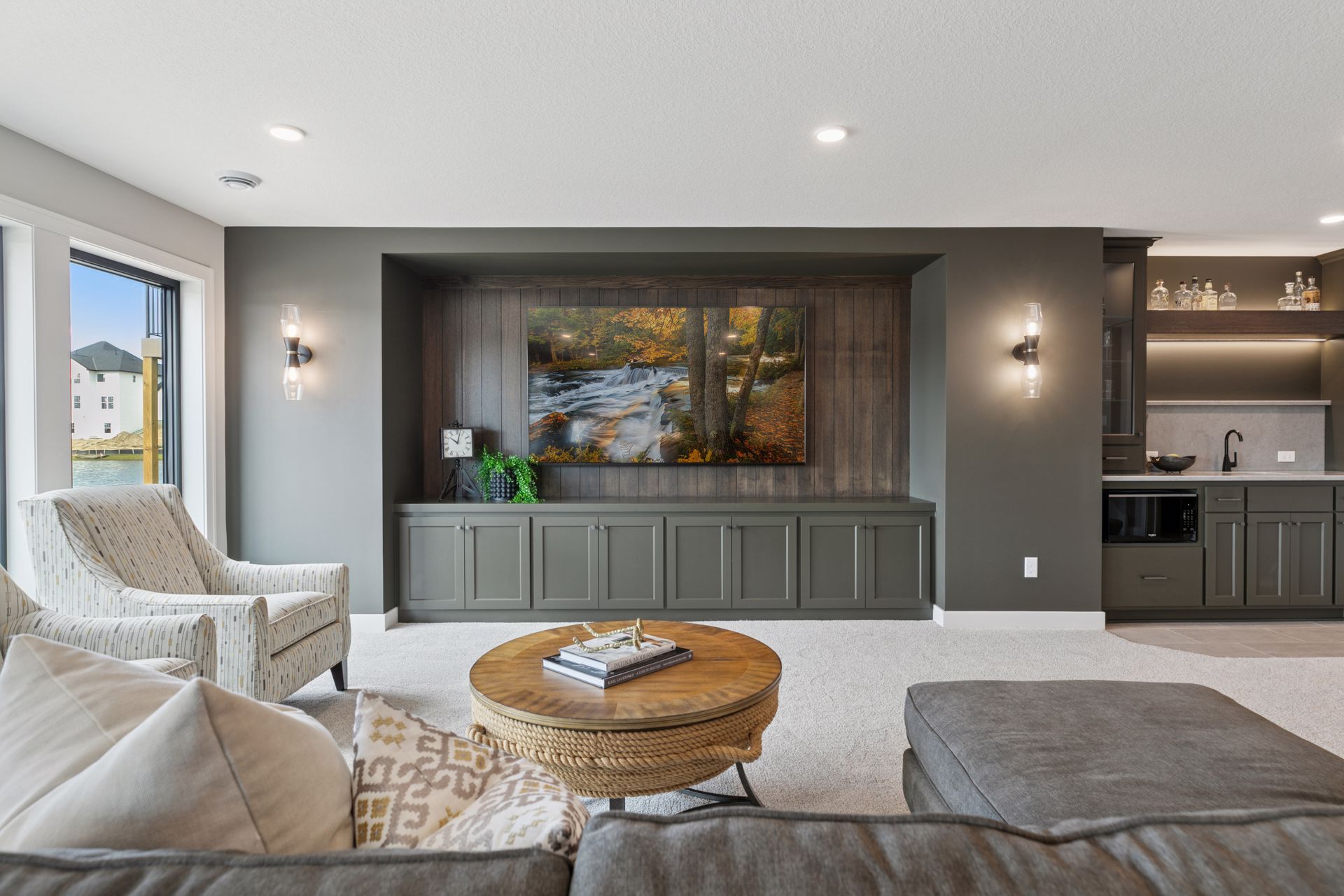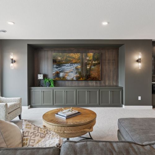 · Family Room and Game Areas features a built-in entertainment cabinet with ample storage and vertical shiplap accent. A walk-up Wet Bar for easy serving completes the perfect space for entertainment.