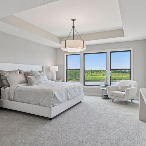 · Owner's Suite boasts a dramatic raised ceiling and large bank of windows for abundant natural daylight, creating a bright and airy retreat.
