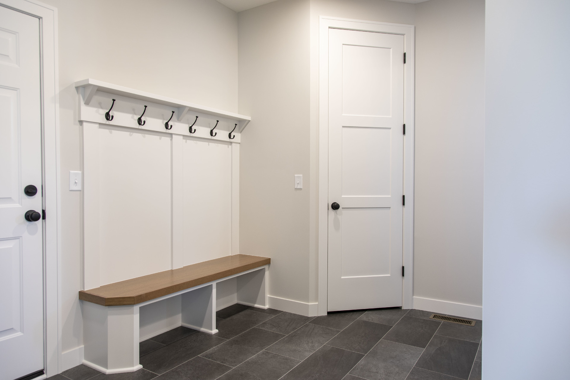 - Mudroom with built-in bench and a walk-in closet.