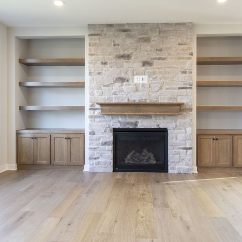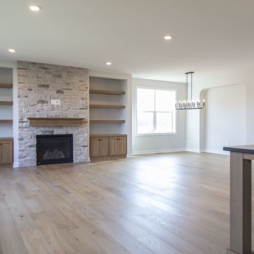 - Great room offers an included fireplace with built-in cabinets