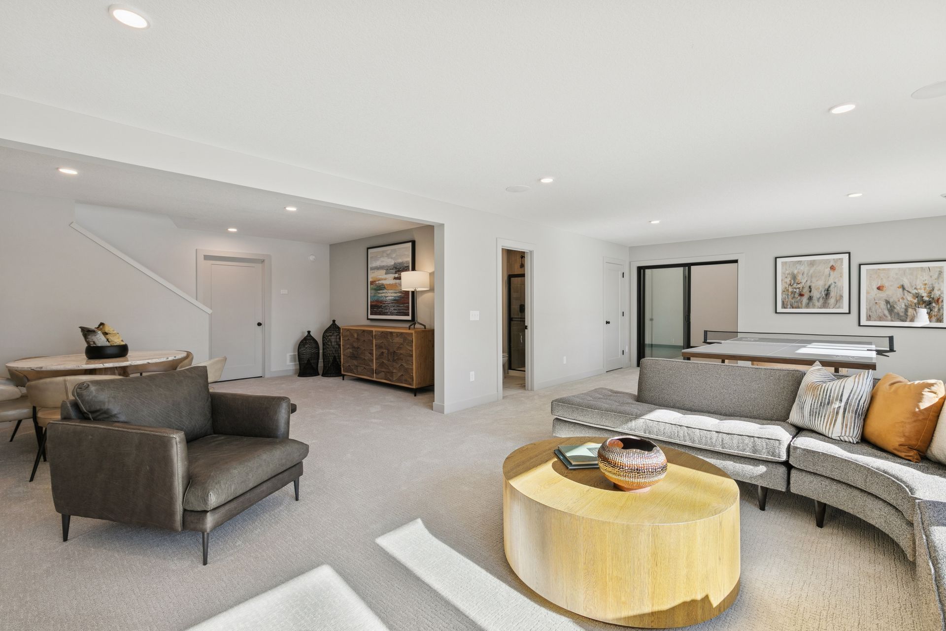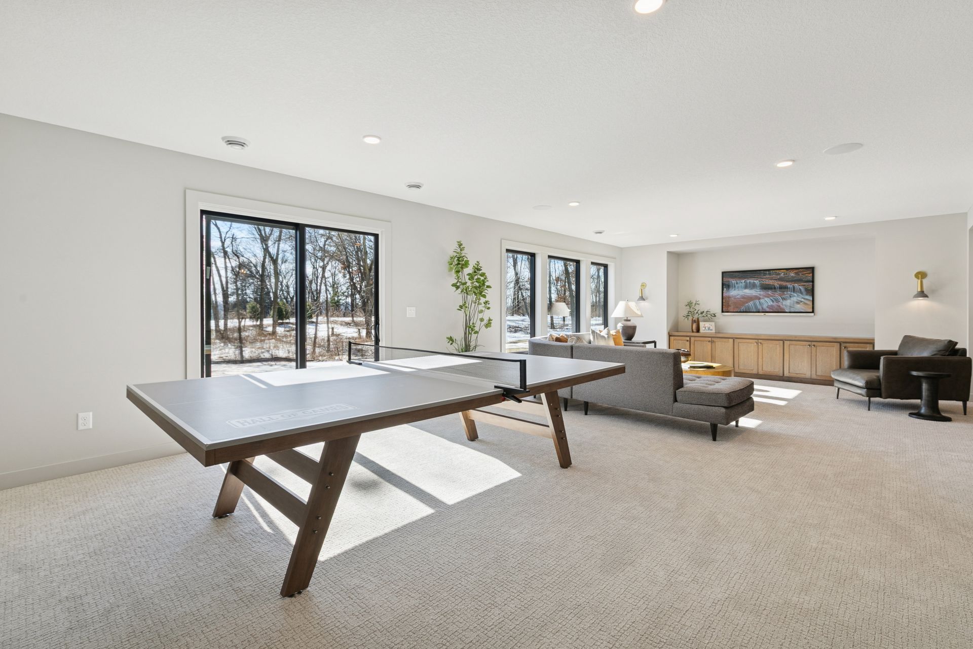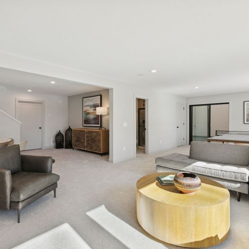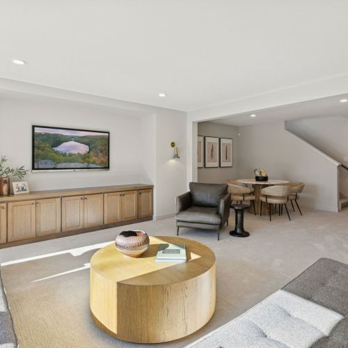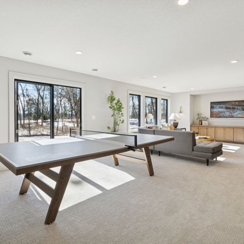 - Spacious Family Room features a built in media cabinet & decorative sconce lights, a large Games area, a ¾ Bath plus rough-in for future Wet Bar