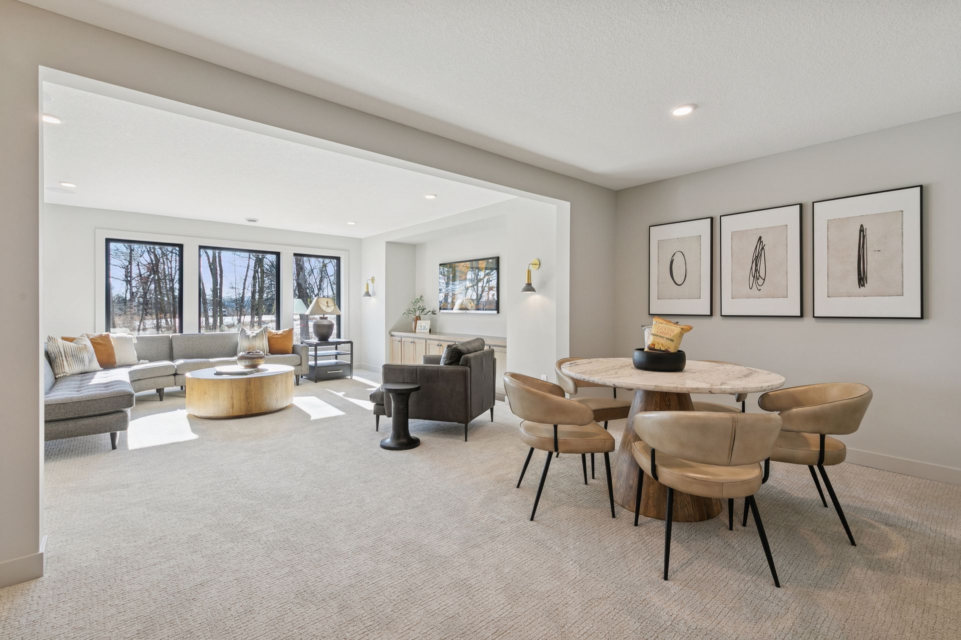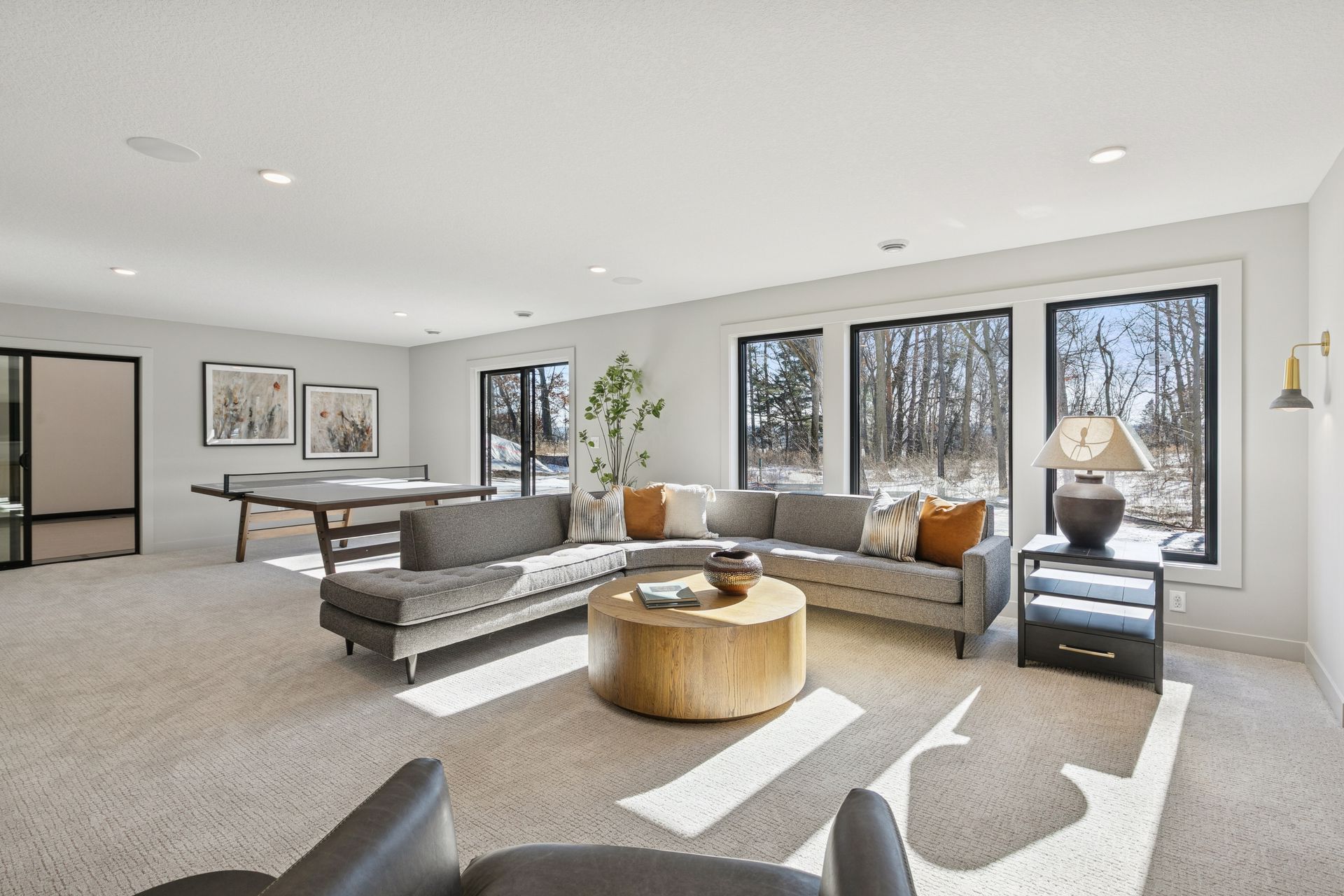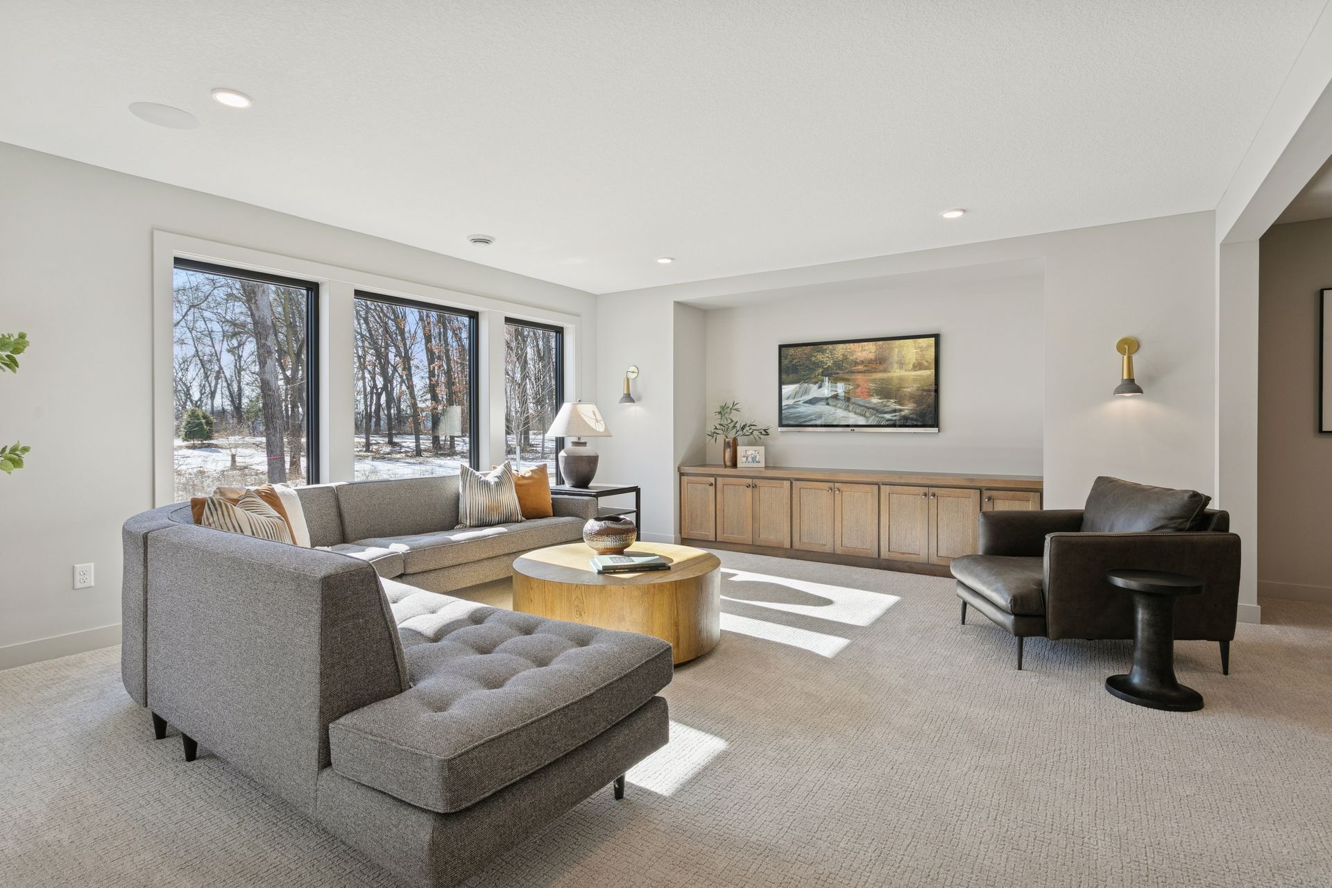 - Spacious Family Room features a built in media cabinet & decorative sconce lights, a large Games area, a ¾ Bath plus rough-in for future Wet Bar