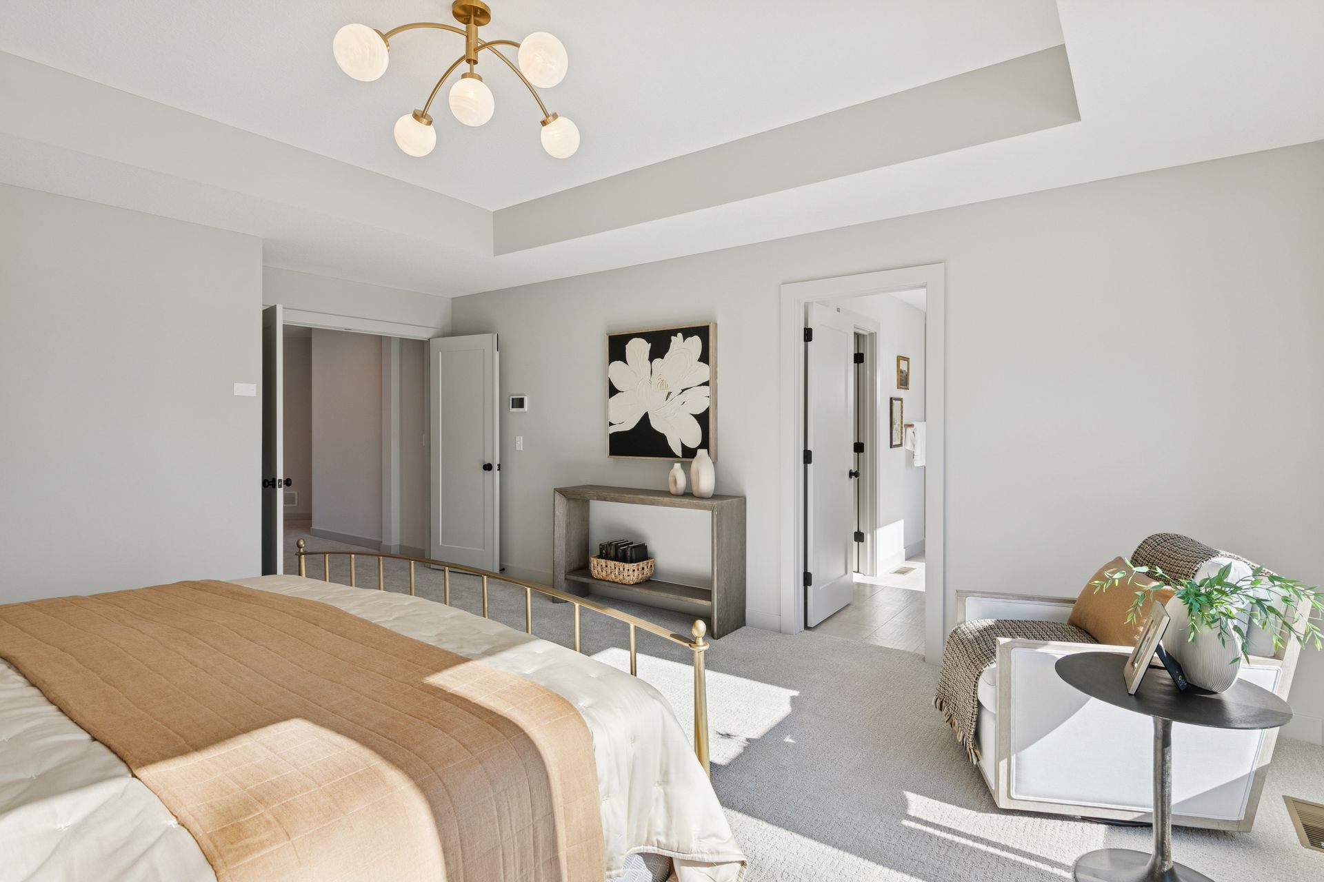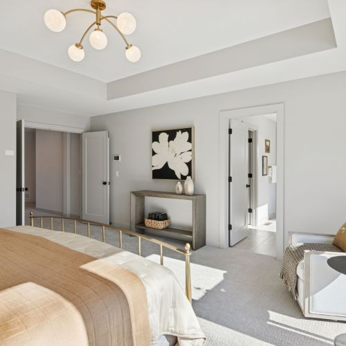 - Owners Suite with double door entry offers dramatic raised ceiling and additional windows creating a bright and airy retreat